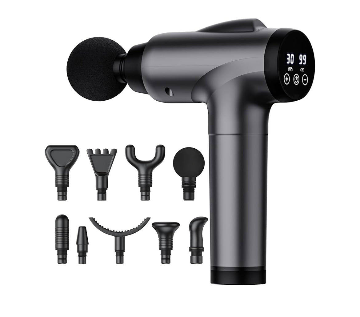 ➕(9 Massage Heads & 30-speed Levels): Our muscle massager gun boasts 9 massage heads and 30-speed levels to target various massage groups, including options for deep tissue. Ideal for use in your legs, arms, back, torso and neck.