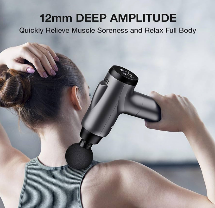 🦾(Ergonomic Design): Use this muscle massage gun to relieve stressed muscles, speed post-workout recovery, or to rejuvenate after a long day at work. Ergonomic gun shape of our handheld massager gun enables a better grip and a fatigue-free use for a long time.