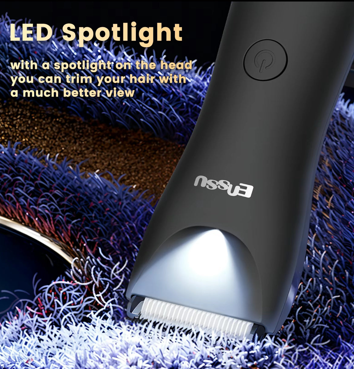 ENSSU Body Hair Trimmer for Men - Waterproof Meridian Trimmer with LED Light, 6000RPM Fast Motor, 5 Length Settings (Black)