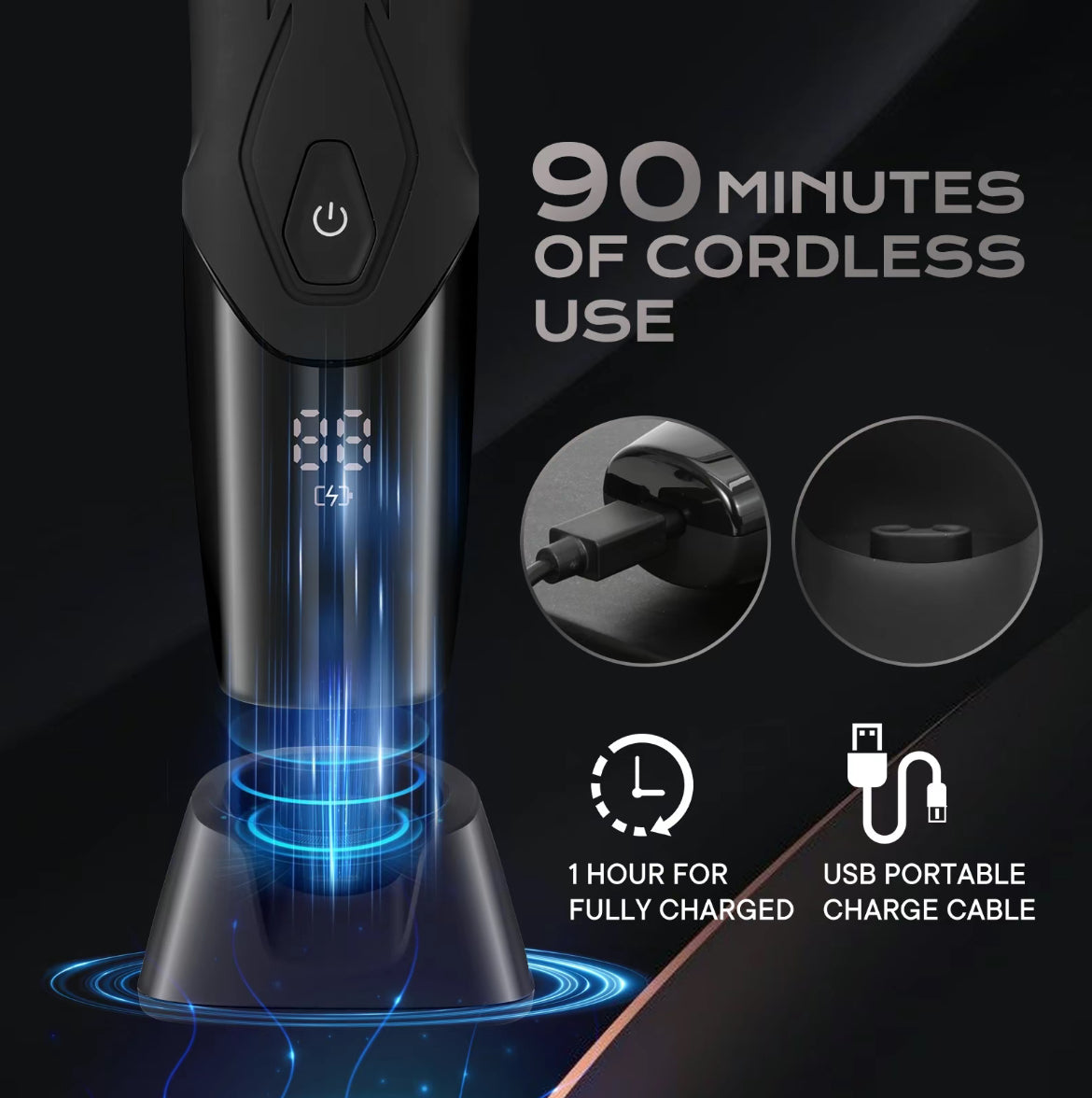 🚀(LED Light & Strong Motor): Built-in headlight for visibility in dark areas, plus a 6000RPM motor for smooth, tug-free trimming without pulling hairs.