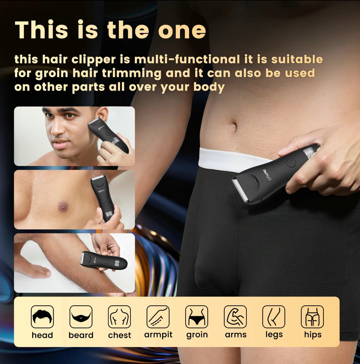 (Multi-Functional Grooming): Includes 2 adjustable combs (3-12mm) for 5 length settings, ideal for hair, beard, armpits, chest, and intimate areas.